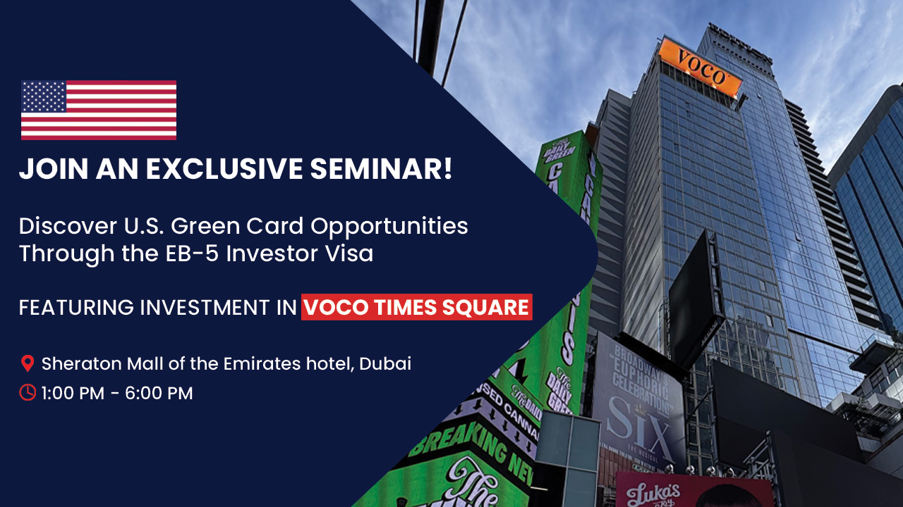 Join our exclusive seminar in Dubai on the EB-5 Visa and VOCO Times Square investment opportunities.. (registration link below)